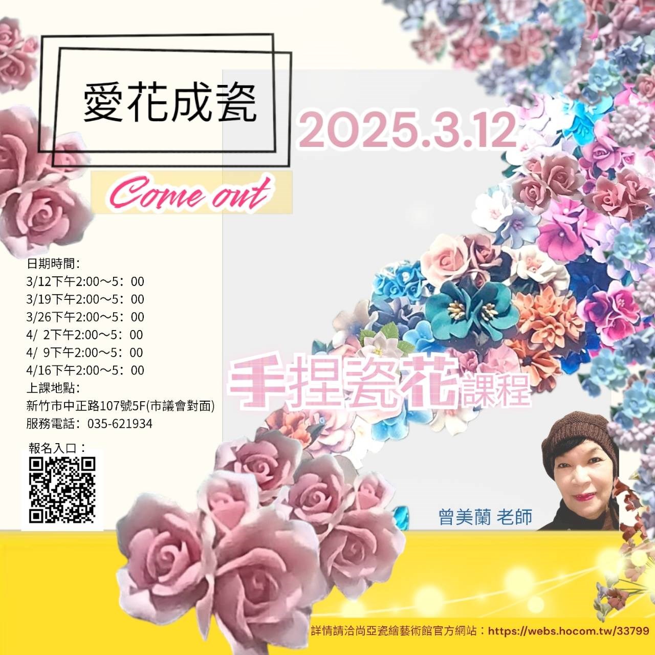 有幸邀請美蘭老師,開這門[愛花成瓷]的課程,是多麼榮幸!美蘭老師年紀漸長,平均一年只做三次瓷花。我們該體恤老師有限的體力、珍視她的古法專業與傳承的精神,廣邀同好一起期待並報名支持[愛花成瓷]這一課程,也祝福美蘭老師身體健康,我們才有福份學習到這門獨特的工藝!