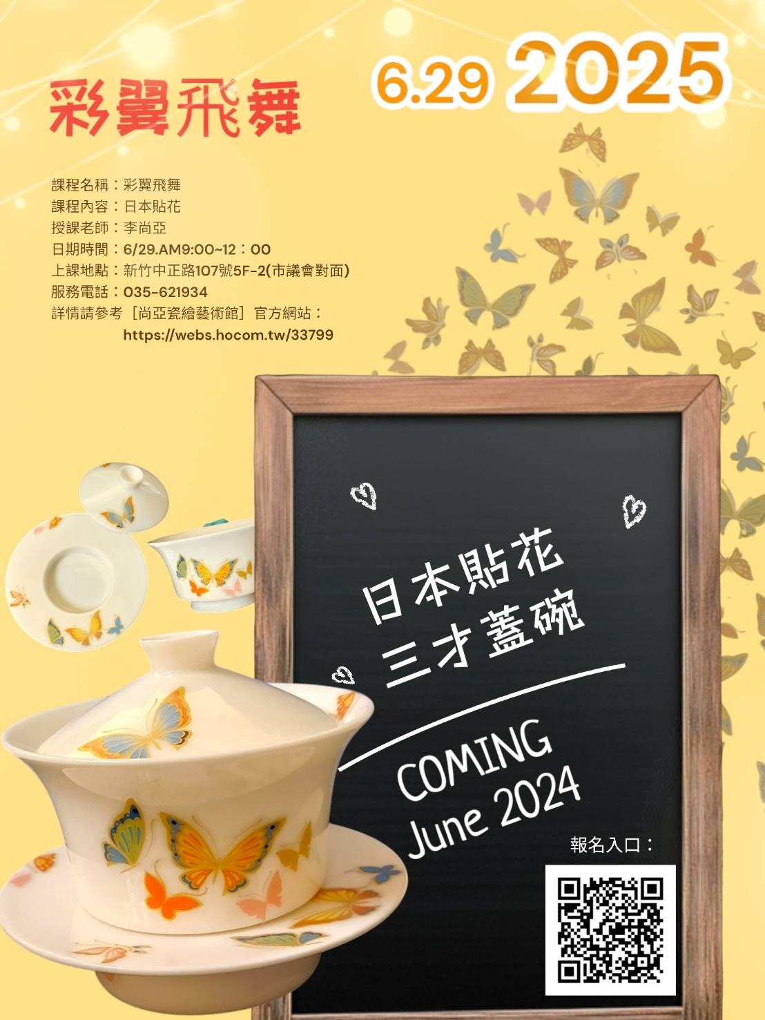 報名方式:報名請掃描海報上的QR Code 到尚亞瓷繪藝術館官網點選 : "課程預約"